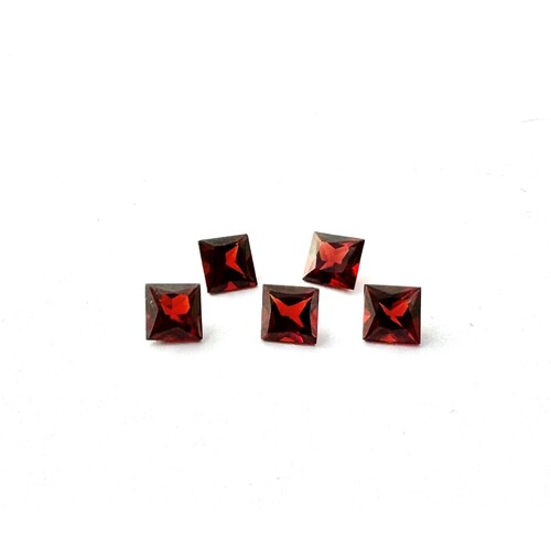 Garnet Princess cut measuring 5 x 5mm. Stones are generally a rich deep brown/red to deep red..
