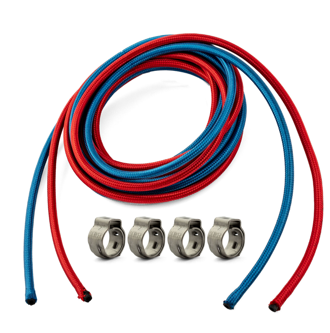 This kit is supplied with 4 x Hose clamps so the nut and barbs from your torch can be reused and easily re-crimped with a pair of side cutters.