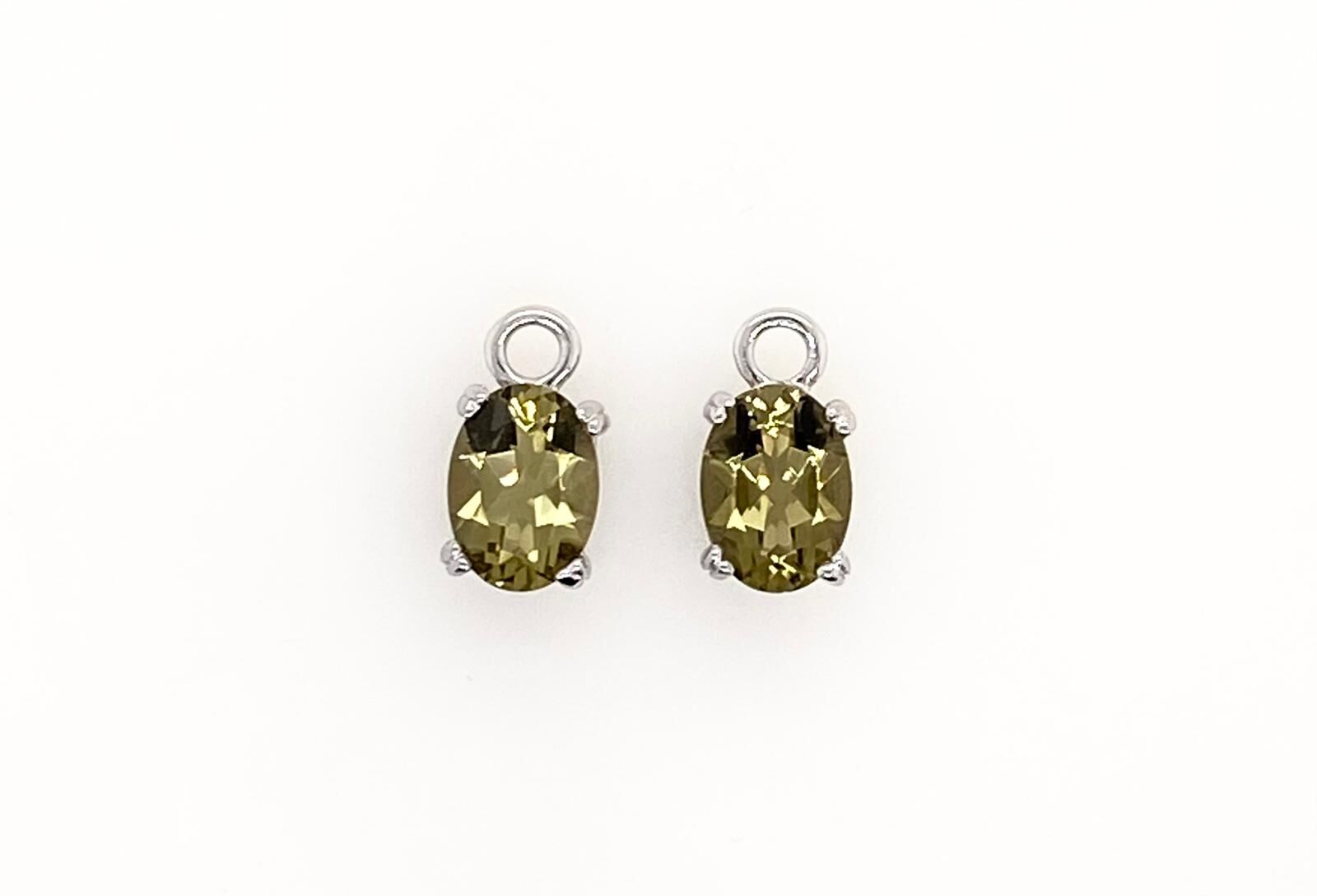 S/S four claw (double claw) settings set with 7x5mm oval olive quartz.