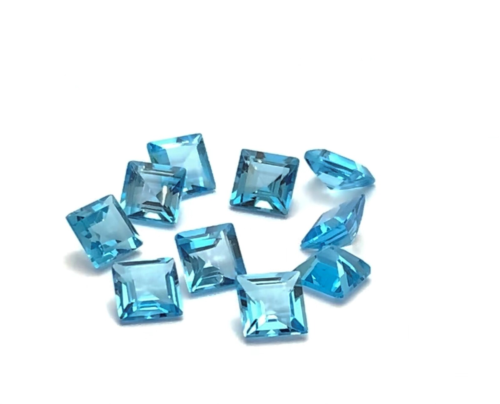 Square Carre cut faceted Blue Topaz measuring 5.00 x 5.00mm.